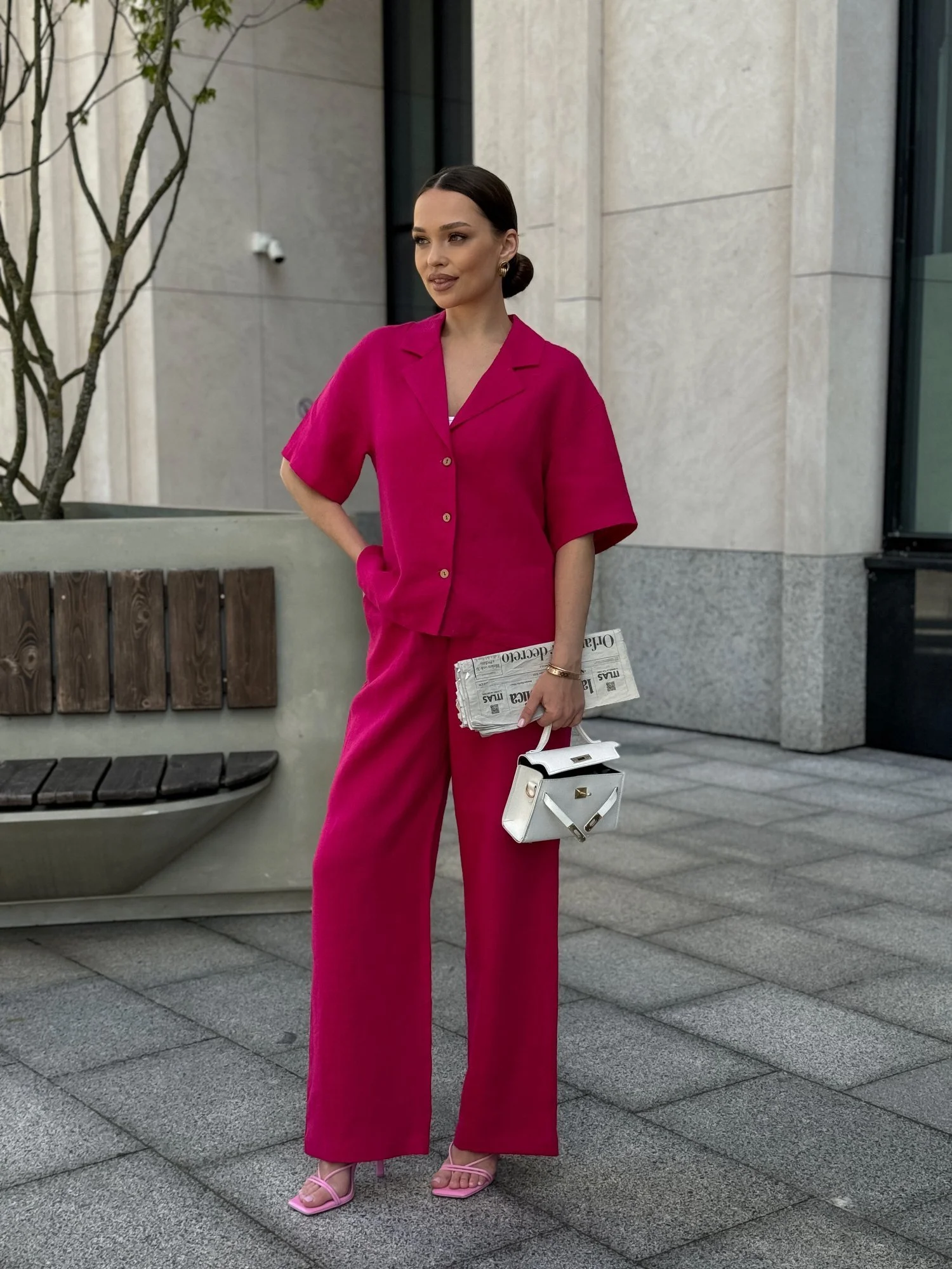 Костюм с рубашкой с укороченным рукавом цвет Фуксия