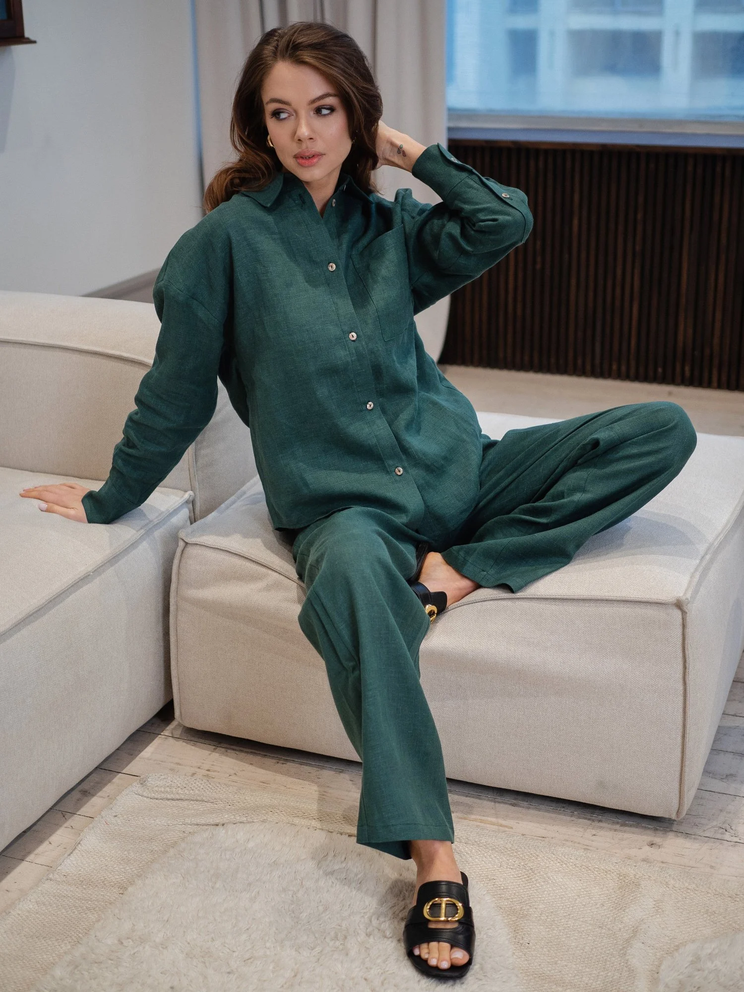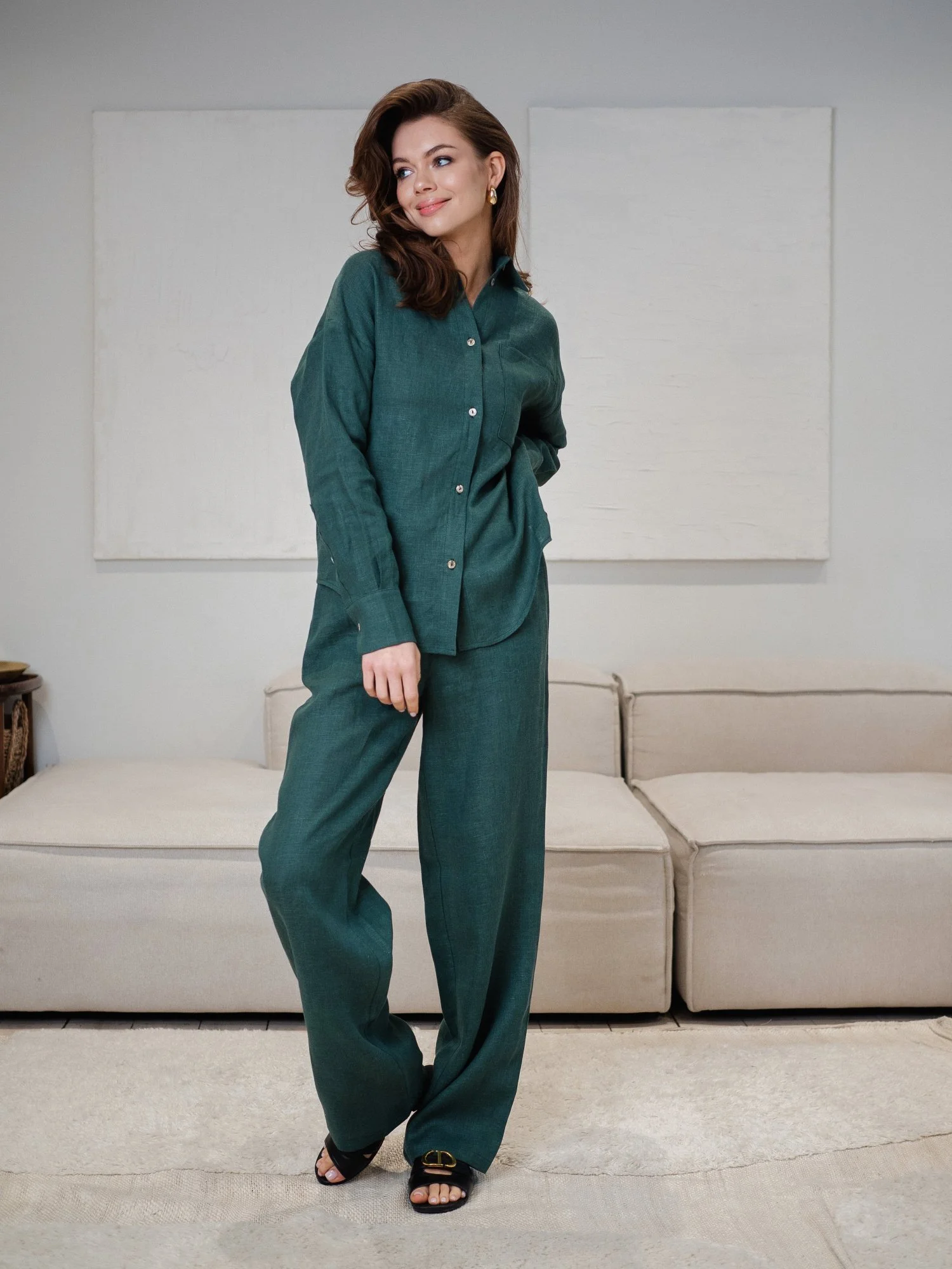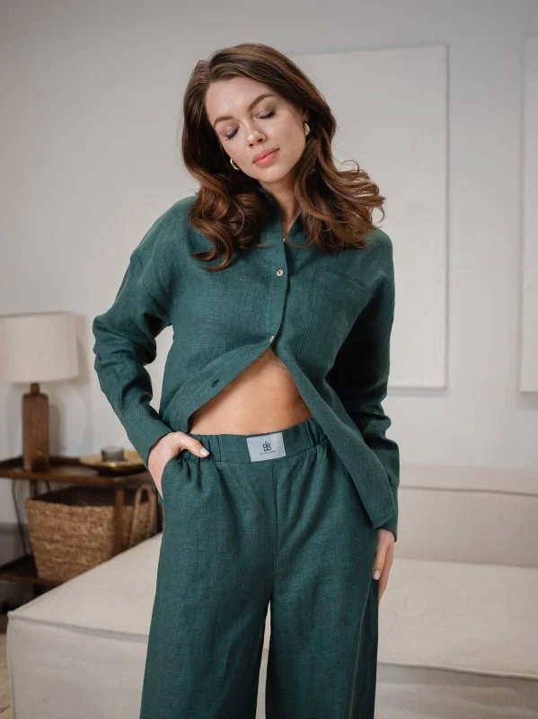 —Брюки из льна цвет Изумруд