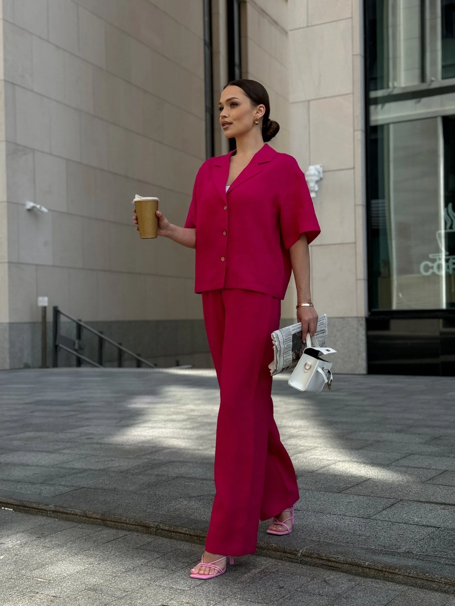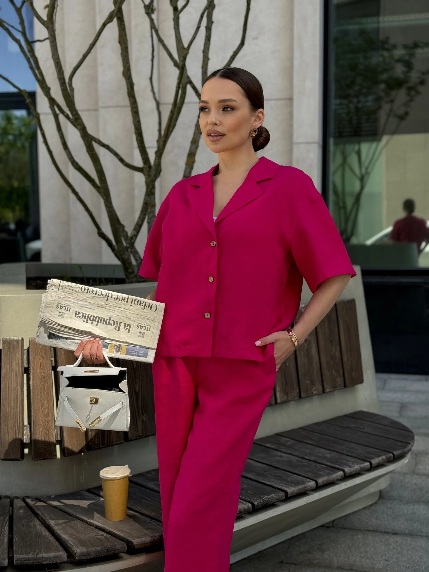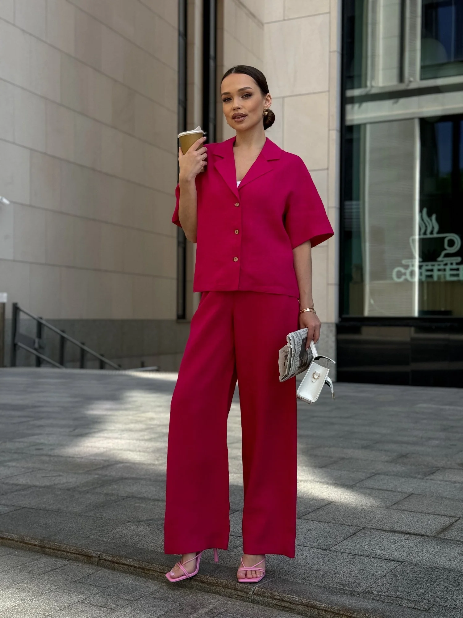 Костюм с рубашкой с укороченным рукавом цвет Фуксия