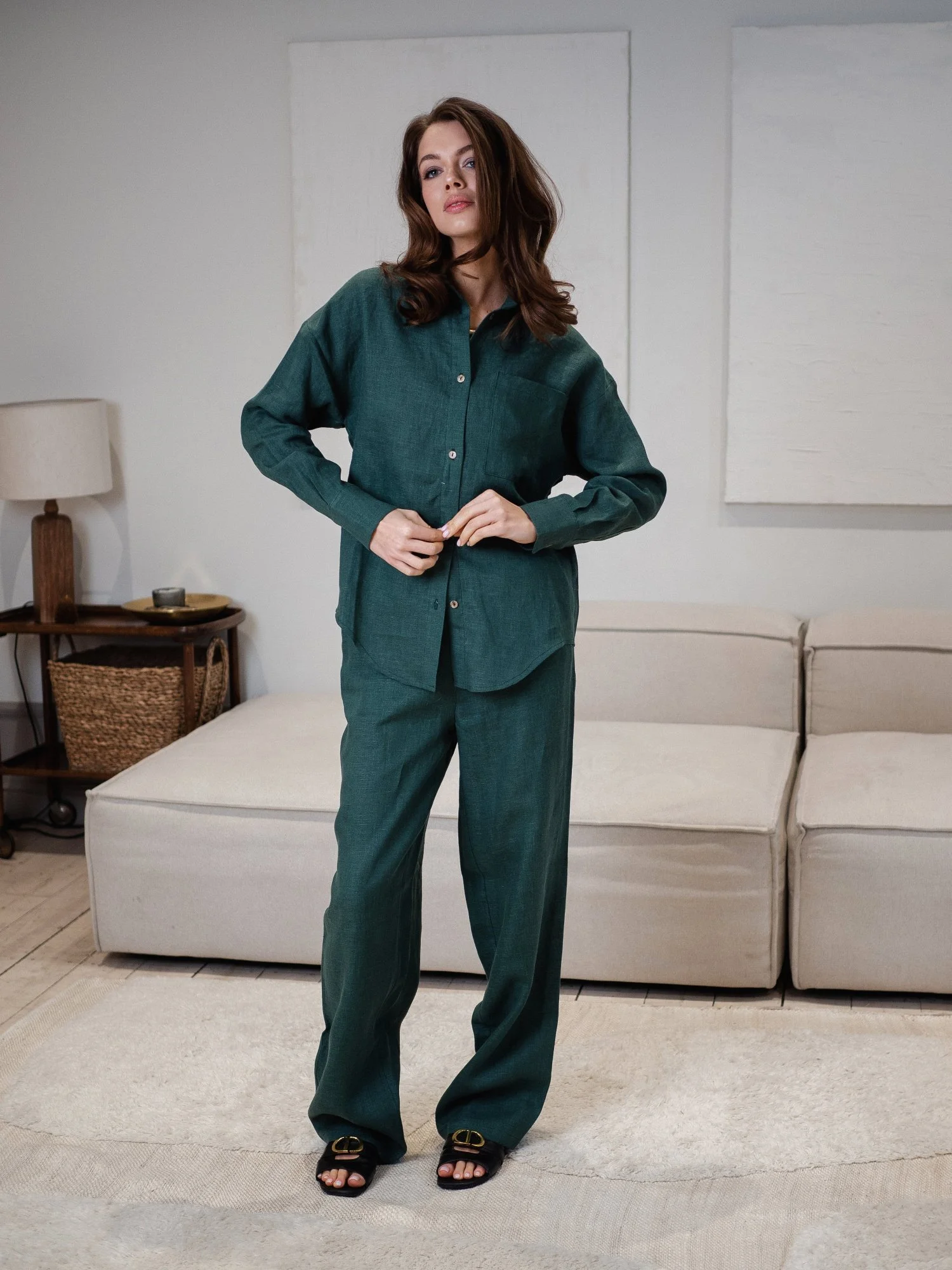—Брюки из льна цвет Изумруд
